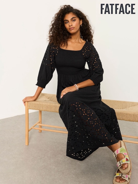 Μαύρο - Φόρεμα Midi Κοντομάνικο Κέντημα Joules Susanna