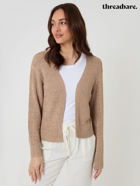 Ανοιχτό καφετί - Πλεκτή Threadbare ζακέτα με στρογγυλή λαιμόκοψη και δομημένο τελείωμα