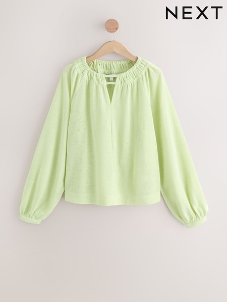 Πράσινο φασκόμηλου - Μακρυμάνικη Μπλούζα με εγκοπή στο ντεκολτέ