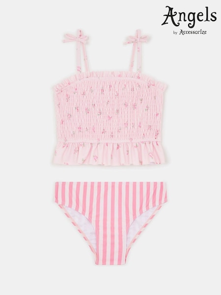 Angels By Accessorize Pink Floral Stripe Tankini Set