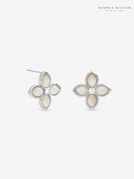 Inicio Sterling Silver Plated Mother of Pearl Clover Stud Earrings