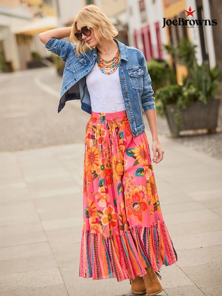 Joe Browns Pink Elena Border Hem Maxi Skirt