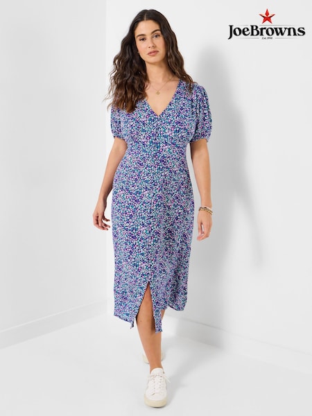 Joe Browns Purple Heidi Crinkle Cotton Border Print Dress