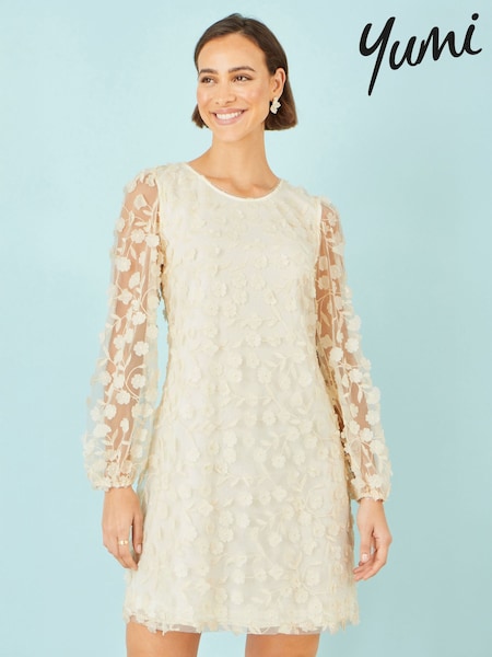Yumi Cream Long Sleeve Floral Applique Tunic