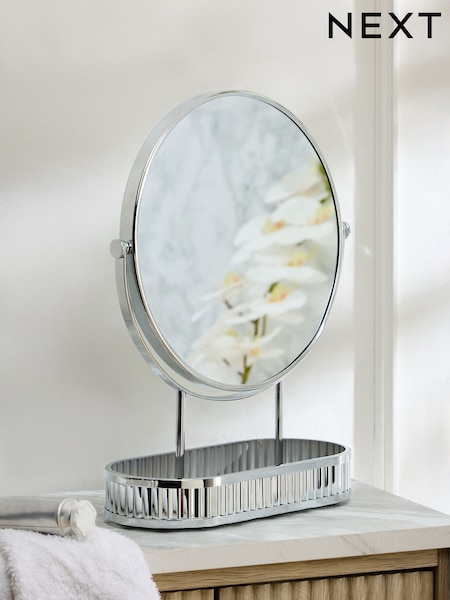 Silver Rib 5x Magnification Round Dressing Table Mirror