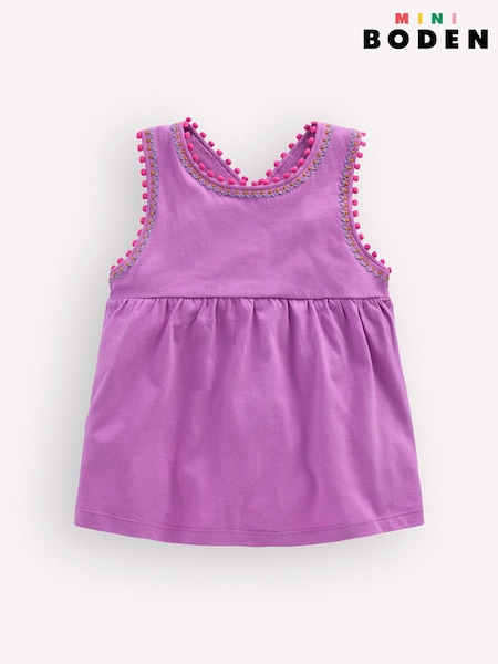 Boden Purple Cross-back Pom Trim Top