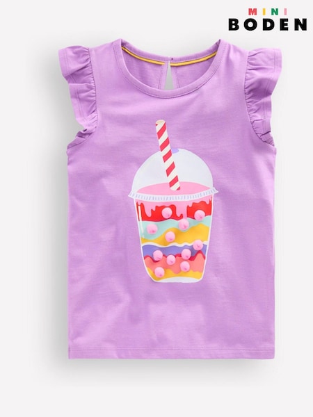 Boden Purple Short Sleeve Frill Logo Top