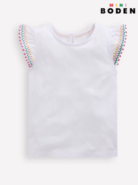 Boden White Embroidered Flutter Sleeve Top