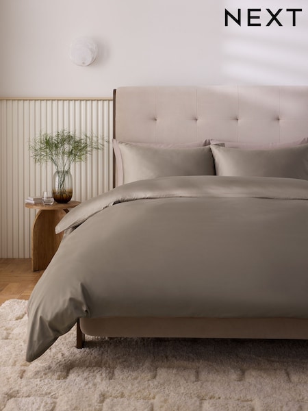 Dark Natural 400 Thread Count Egyptian Cotton Sateen Luxury Duvet Cover and Pillowcase Set