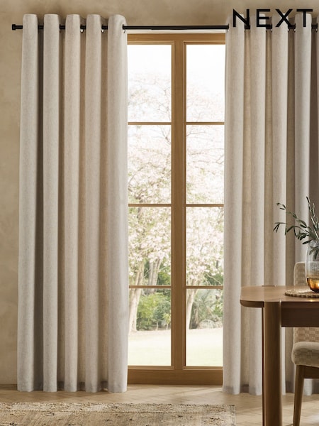 Catherine Lansfield Natural Crushed Velvet Eyelet Curtains