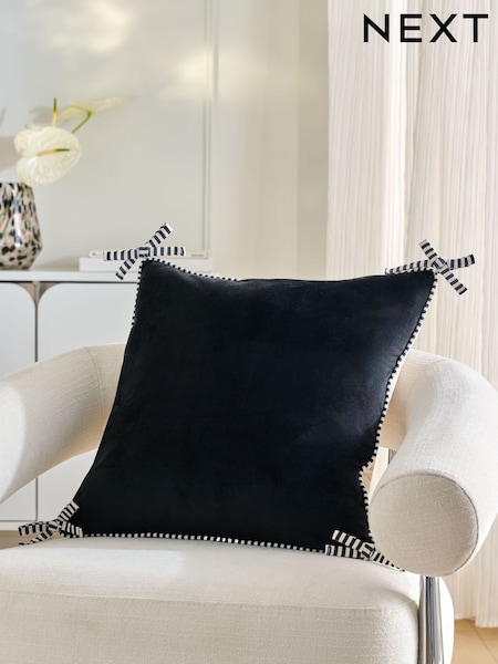 Monochrome 50 x 50cm Bow Reversible Velvet Cushions