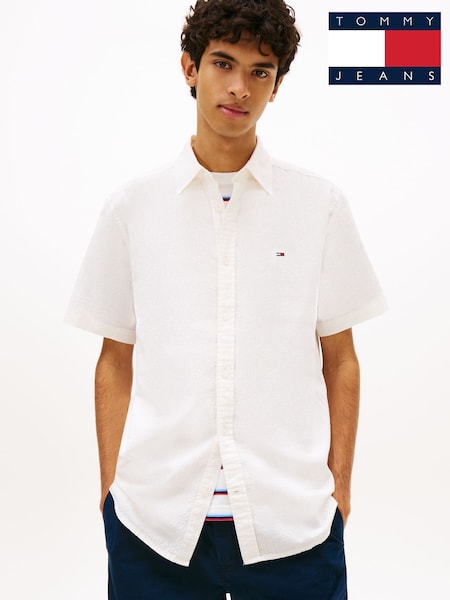 Tommy Hilfiger White Short Sleeve Linen Shirt