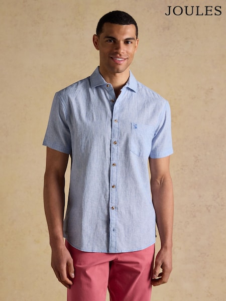 Joules Linen Blend Blue and White Short Sleeve Shirt