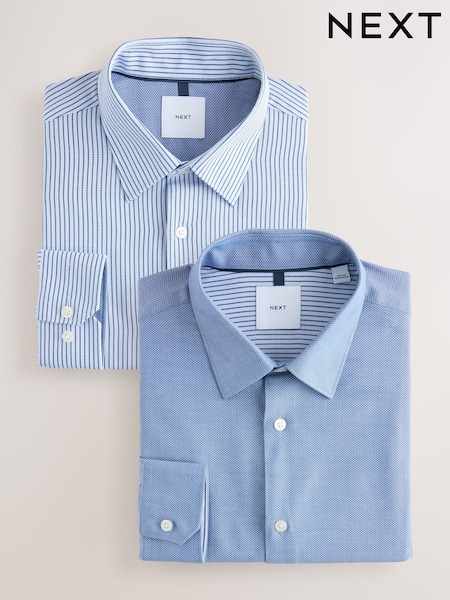 Blue Texture/Stripe Regular Fit Single Cuff Easy Care Smart Shirts 2 Pack