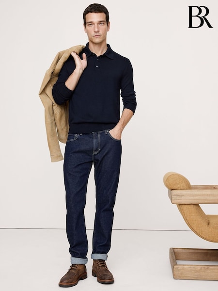 Banana Republic Navy Blue Merino Long-Sleeve Polo Jumper