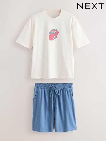 White The Rolling Stones Graphic Short Sleeve Pyjamas Set