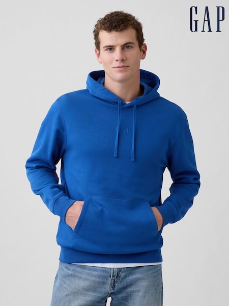 Gap Navy Blue Fleece-lined Pullover Logo Hoodie
