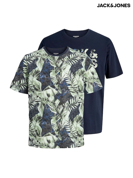 JACK & JONES Blue Regular Fit Printed T-Shirts 2 Pack