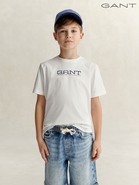 GANT White Coastal Graphic Short Sleeve T-Shirt