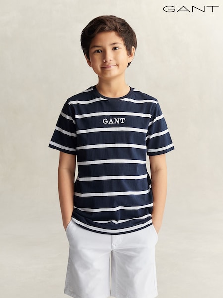 GANT Blue Graphic Stripe Short Sleeve T-Shirt