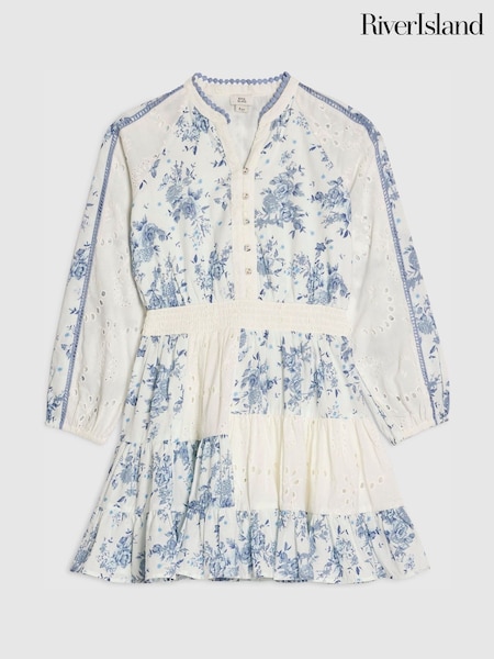 River Island Pink Long Sleeve Embroidered Shirred Dress