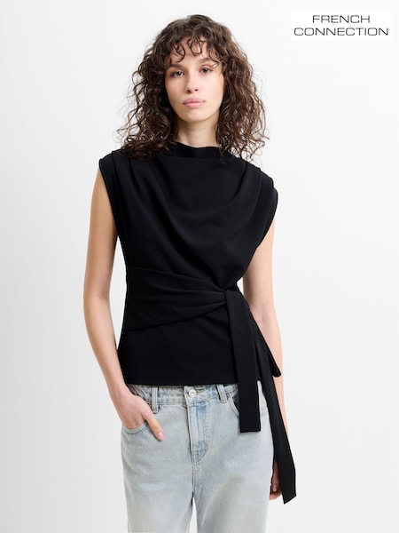French Connection Black Zion Jersey Belted Shift Top