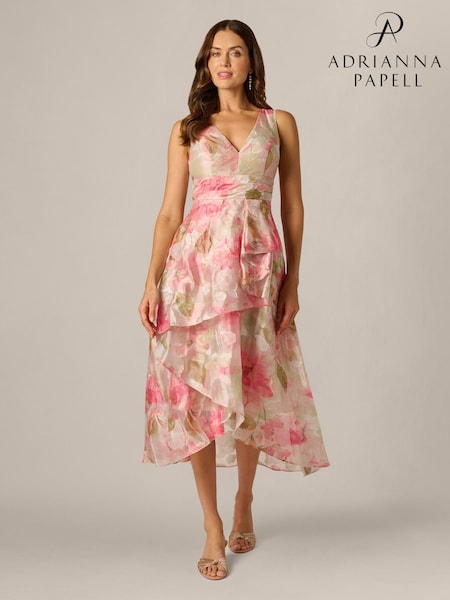 Adrianna Papell Pink Cascade Organza Dress