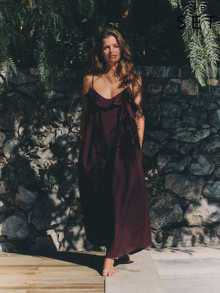 The Set 2 Pack Ruffle Trim Strappy Maxi Dresses Black/Burgundy Red