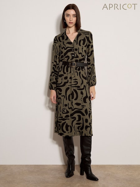 Apricot Green Abstract Brushstroke Midi Dress