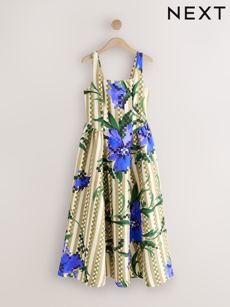 Multi Stripe Square Neck Cami Midi Dress