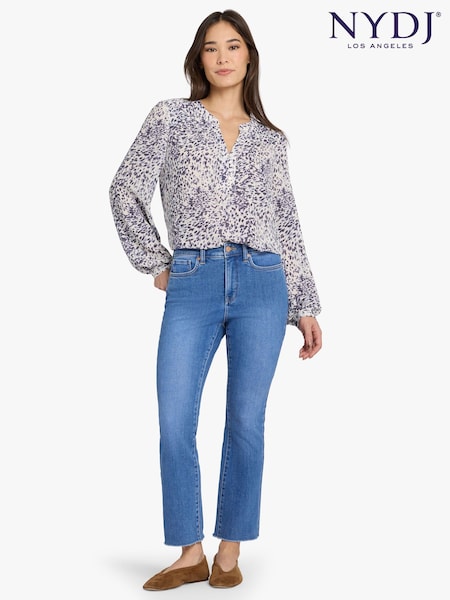 NYDJ Blue Billie Mini Bootcut Ankle Jeans With High Rise And Frayed Hems