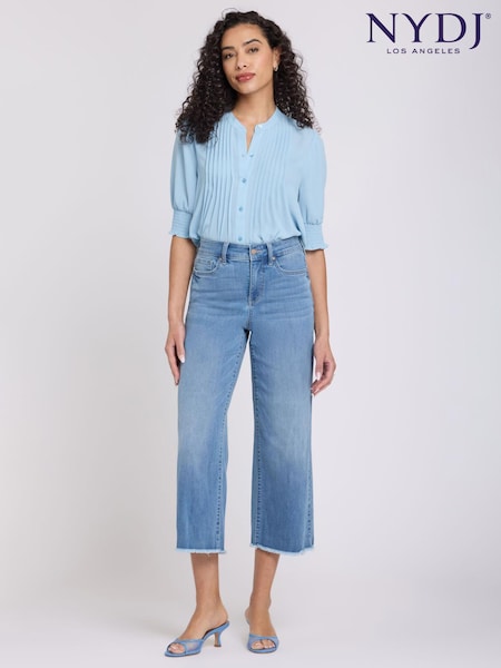 NYDJ Blue Coco Relaxed Wide Leg Crop Jeans With High Rise And Frayed Hems