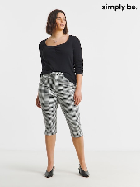 Simply Be Black Gingham Capri Jeans
