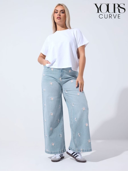 Yours Curve Blue Limited Floral Embroidered Jeans
