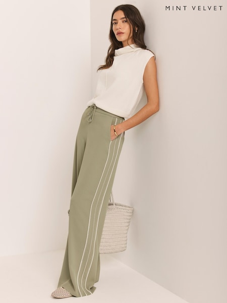 Mint Velvet Green Side Stripe Wide Trousers