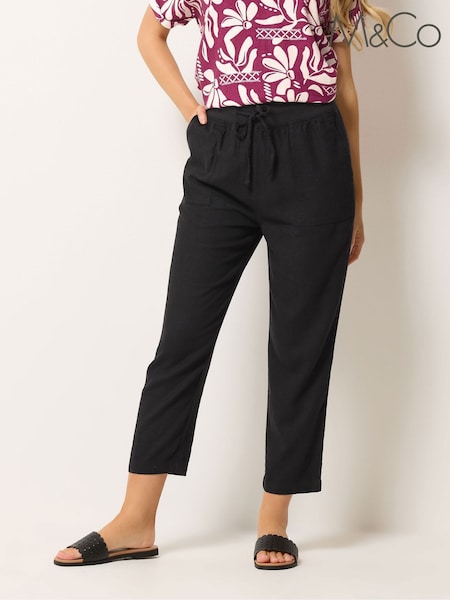 Yours Curve Black Elasticated Cool Cotton Cropped Trousers
