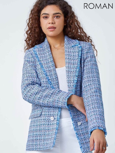 Sosandar Blue Ruched Sleeve Denim Blazer