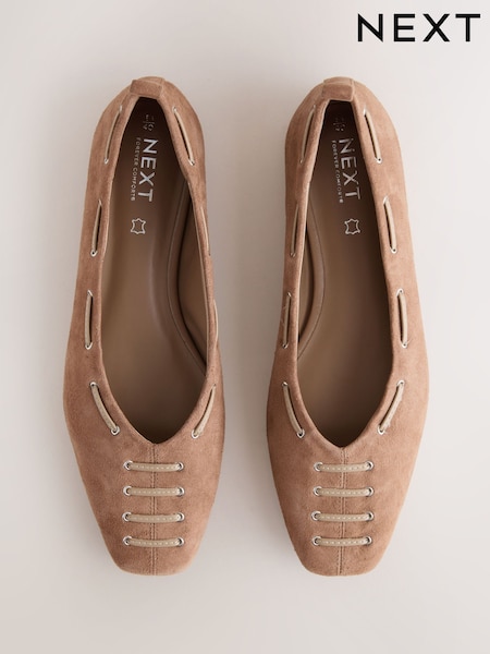 Black Forever Comfort® Suede Eyelet Square Toe Ballet Flats