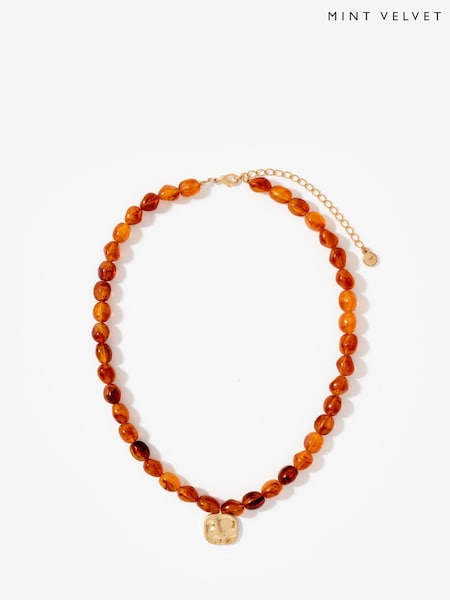 Mint Velvet Brown Beaded Charm Necklace