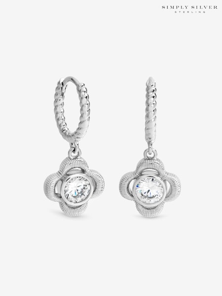 Simply Silver 925 Sterling Silver Satin Clover Huggie Hoops