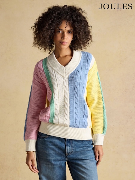 Joules Pink Cable Knit Cricket Cotton Jumper