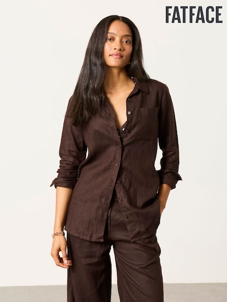 FatFace Olivia Chocolate Brown Petite Linen Shirt
