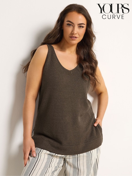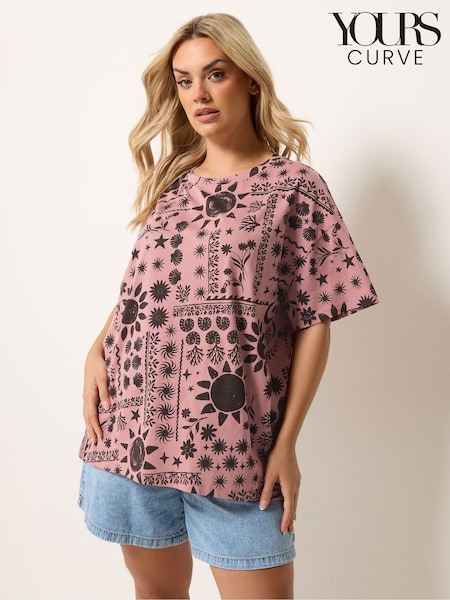 Yours Curve Brown Sun Patch Stepped Hem Boxy T-Shirt