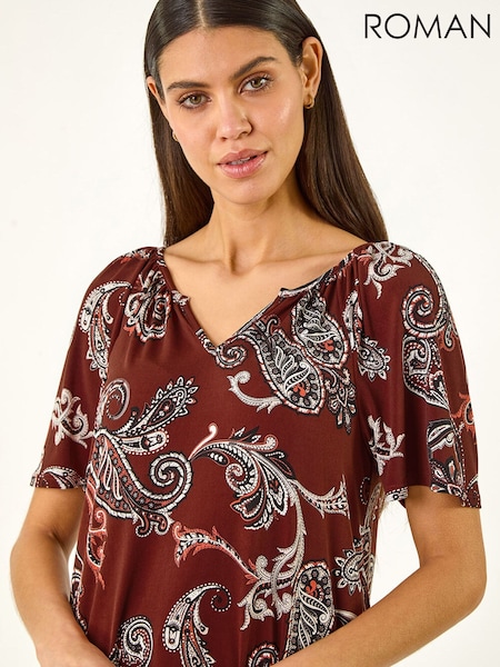 M&Co Brown Short Sleeve Notch Neck Shirt