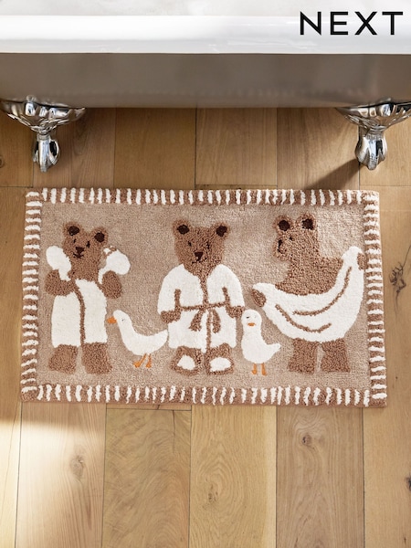 Natural 100% Cotton Bertie Bear Woodland Spa Runner Bath Mat
