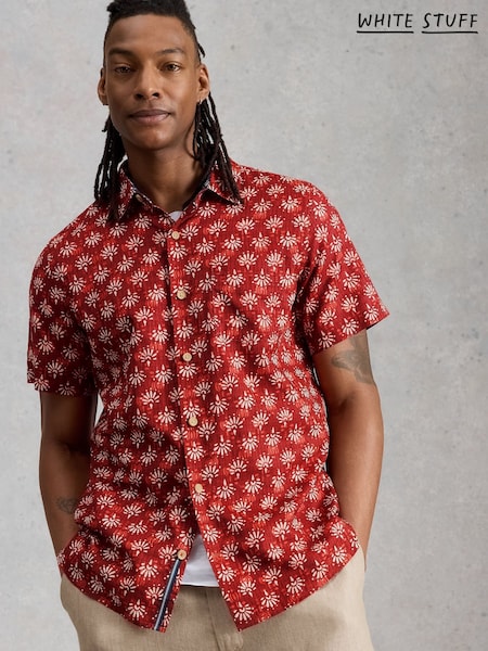 White Stuff Bright Red Finsbury Ss Floral Print Shirt