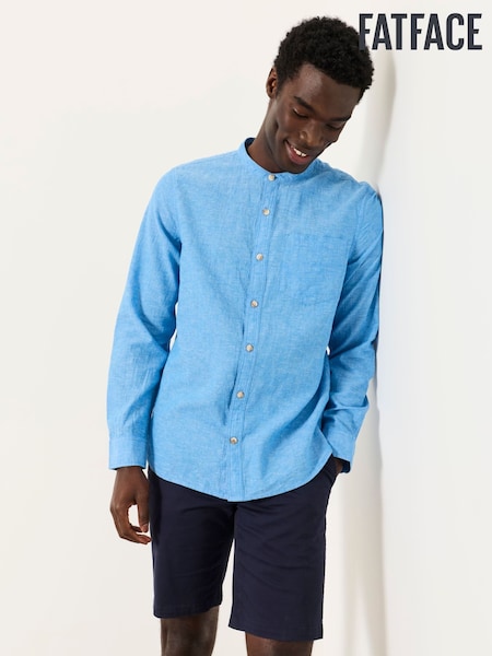 FatFace Bugle Bright Blue Long Sleeve Grandad Linen Cotton Shirt