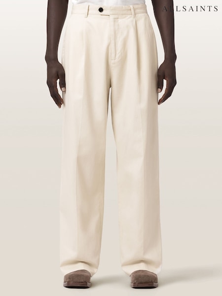 Reiss Off White Augustine Wide Leg Plisse Trousers