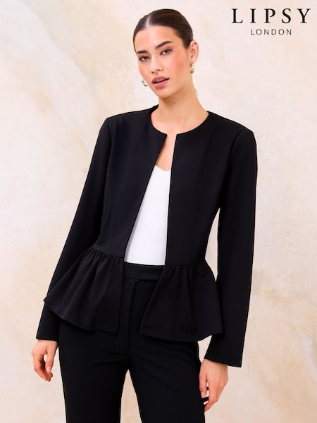 Lipsy Black Collarless Peplum Hem Blazer