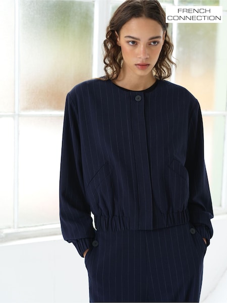 French Connection Blue Alia Pinstripe Bomber Jacket
